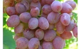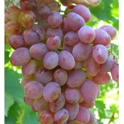 Ягоды — визитная карточка сорта. Их овальная форма и крупный размер (4-5 г) делают гроздь очень презентабельной. Окрас кожицы &mdquo;розовый” на практике часто проявляется как нежный розовато-красный оттенок, который усиливается на солнце до яркого румянца. Мякоть плотная, мясисто-сочная, с гармоничным балансом сахара и кислоты.