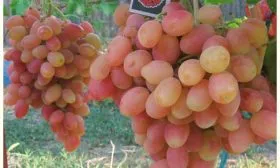 Внешний вид урожая этого сорта выделяется своей декоративностью. Грозди имеют рыхлую или средне-рыхлую структуру, что является преимуществом, так как снижает риск поражения ягод гнилями из-за плохой проветриваемости. Средняя масса кисти составляет около 687 граммов.