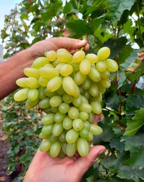 Второй родитель, «Арарати», передал гибриду крупный размер ягод и высокий потенциал урожайности. Эти качества были успешно закреплены: средняя масса ягоды в 10.2 грамма и вес гроздей до 1.5 кг подтверждают эффективность проведенной селекционной работы.