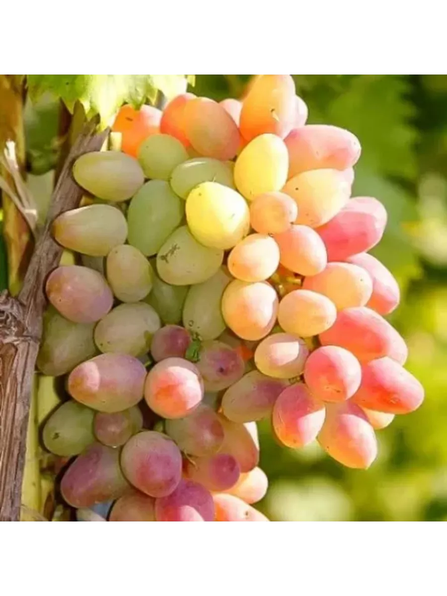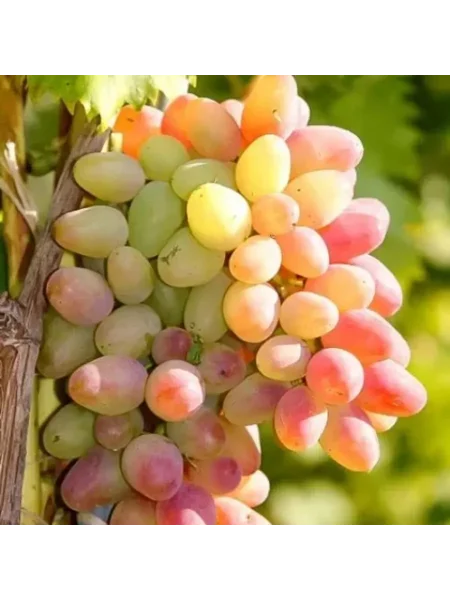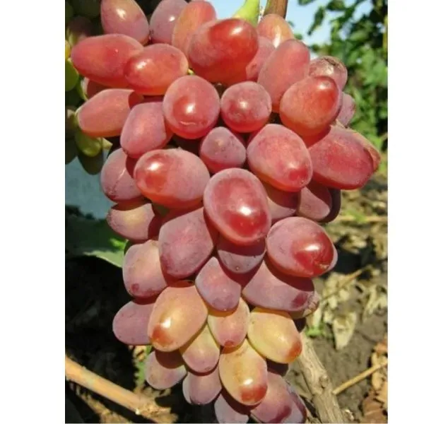 Ягоды крупные, их овально-сосковидная форма с характерным заостренным кончиком — один из визуальных маркеров сорта. Их цвет — одна из самых привлекательных черт: основной розовый оттенок на солнце переливается в насыщенный красный, делая гроздь очень нарядной. В тени или при загущенной посадке окраска может быть менее интенсивной.