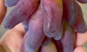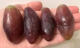 Главная гордость сорта – ягода. Ее удлиненная, пальцевидная форма с острым кончиком является визитной карточкой Автографа Калугина. При весе 20-25 граммов каждая ягода выглядит впечатляюще. Насыщенный красно-вишневый цвет сигнализирует о полной физиологической зрелости.
