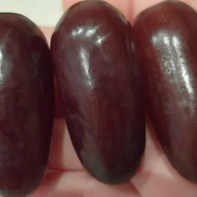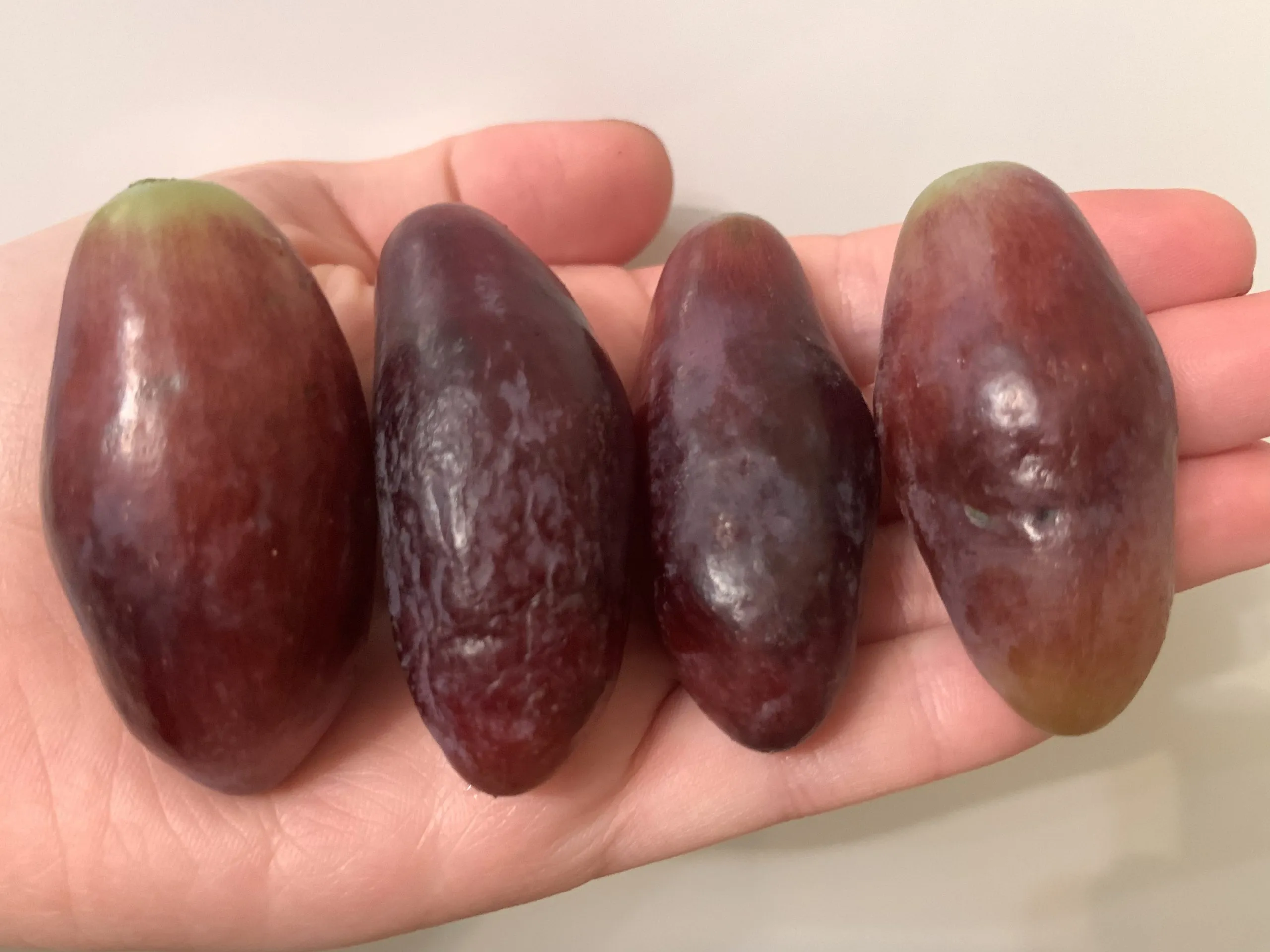 Главная гордость сорта – ягода. Ее удлиненная, пальцевидная форма с острым кончиком является визитной карточкой Автографа Калугина. При весе 20-25 граммов каждая ягода выглядит впечатляюще. Насыщенный красно-вишневый цвет сигнализирует о полной физиологической зрелости.