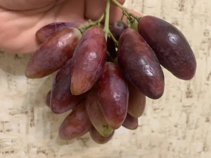 Визуальная привлекательность – одна из сильнейших сторон сорта. Удлиненные ягоды красно-вишневого цвета, достигающие массы 20-25 грамм, формируются в крупные, нарядные грозди средней плотности весом от 700 до 1300 грамм. Плотная, но съедаемая кожица в сочетании с хрустящей мякотью обеспечивает не только приятные тактильные ощущения при употреблении, но и высокую транспортабельность, что редкость для ранних столовых форм.
