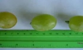 Ягоды крупные, овальной формы, весом от 9 до 12 граммов каждая. Их цвет в технической зрелости — приятный молочно-белый. При длительном нахождении на солнце на кожице может проявиться легкий янтарный «загар», что не считается дефектом.