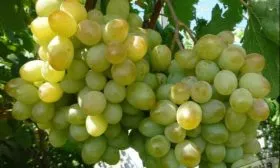 Главное украшение сорта — его кисти. Они имеют коническую форму и среднеплотную структуру. Последнее является большим технологическим преимуществом: ягоды внутри не сдавлены, лучше проветриваются и меньше подвержены гнилям по сравнению с тугими гроздями.
