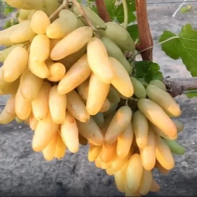 Внешний вид этого винограда не спутаешь ни с каким другим сортом. Главная его «визитная карточка» — удлиненные, слегка изогнутые ягоды, напоминающие миниатюрные бананы. Их уникальная форма является стабильным сортовым признаком и хорошо передается при вегетативном размножении.