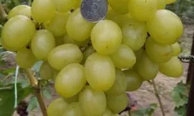 Столовый сорт винограда «Белая Надежда» — отличный выбор для тех, кто ценит ранние урожаи и гармоничный вкус. Его очень крупные ягоды с мускатным оттенком созревают всего за 95-100 дней. Сорт сильнорослый, высокоурожайный и обладает хорошей устойчивостью к болезням, что делает его привлекательным для выращивания.