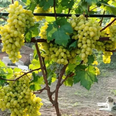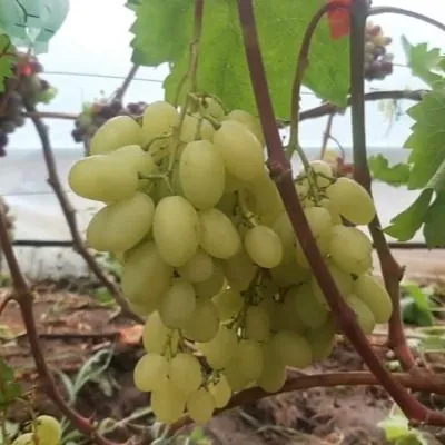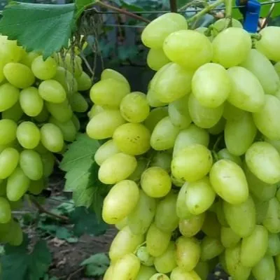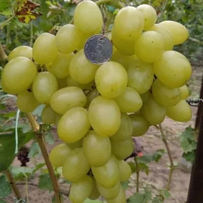 Столовый сорт винограда «Белая Надежда» — отличный выбор для тех, кто ценит ранние урожаи и гармоничный вкус. Его очень крупные ягоды с мускатным оттенком созревают всего за 95-100 дней. Сорт сильнорослый, высокоурожайный и обладает хорошей устойчивостью к болезням, что делает его привлекательным для выращивания.