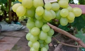 Ягода — главная отличительная черта этого гибрида. Ее овальная форма и крупный размер (15-18 граммов) делают гроздь очень презентабельной. Окраска в технической зрелости — равномерная, приятного желтого цвета с зеленоватым оттенком.