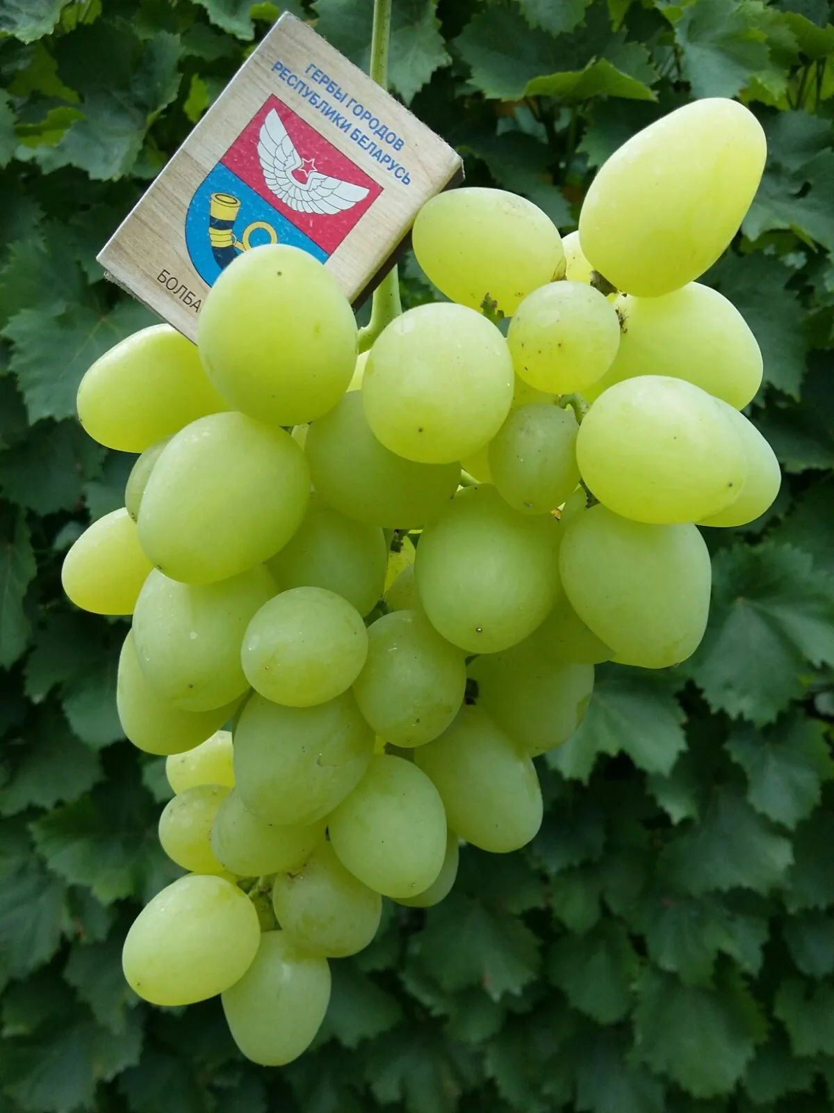 Главная отличительная черта сорта — крупная, вытянутая ягода. Ее яйцевидная или продолговатая форма и вес в 12-16 граммов делают гроздь особенно эффектной. В процессе созревания окраска меняется от зеленоватой до равномерного янтарно-желтого цвета при полной зрелости.