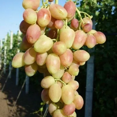 Особого внимания заслуживает окраска. Основной цвет кожицы — светлый, зеленовато-желтый. По мере созревания на ягодах, освещаемых солнцем, проявляется размытый розовый румянец, который может переходить в теплый янтарный оттенок. Из-за неравномерности прокраса гроздь выглядит очень нарядно и «живописно».