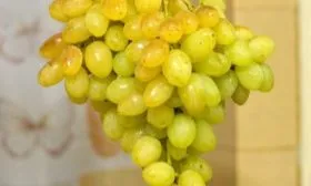 В фазе полной зрелости окраска становится теплой, янтарной. На ягодах, которые больше времени находились под прямыми солнечными лучами, часто проявляется нежный розоватый «румянец». Покрывает сочную мякоть плотная, но съедаемая кожица, которая не создает неприятных ощущений при употреблении в свежем виде.