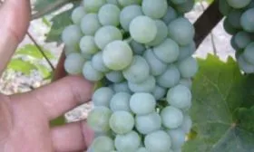 Ягоды округлые, некрупные (до 2 г), выравненные по размеру в пределах грозди. При полной физиологической зрелости их окраска варьируется от зеленовато-соломенной до приятной желтовато-белой. На солнечной стороне часто проявляется нежный золотистый «загар». Тонкая, но при этом плотная и эластичная кожица обеспечивает хорошую устойчивость к растрескиванию и механическим повреждениям.
