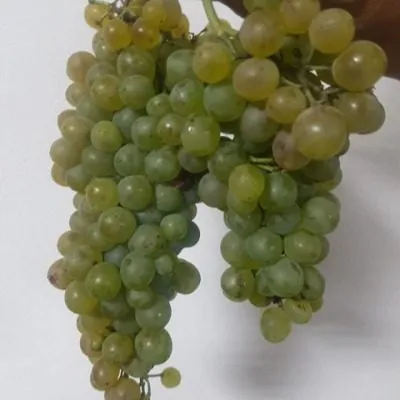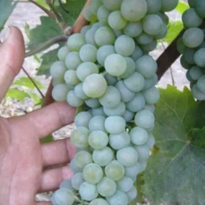 Ягоды округлые, некрупные (до 2 г), выравненные по размеру в пределах грозди. При полной физиологической зрелости их окраска варьируется от зеленовато-соломенной до приятной желтовато-белой. На солнечной стороне часто проявляется нежный золотистый «загар». Тонкая, но при этом плотная и эластичная кожица обеспечивает хорошую устойчивость к растрескиванию и механическим повреждениям.