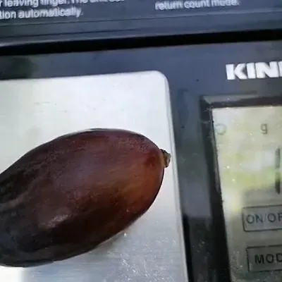 Ягоды – ключевая отличительная черта сорта. Их удлиненная, слегка изогнутая форма, напоминающая коготь, и внушительный вес в 15-17 граммов делают урожай очень эффектным. Окрас не просто черный, а глубокий, иссиня-черный, благодаря обильному восковому налету (пруину). Этот природный налет выполняет защитную функцию, предохраняя кожицу от повреждений и испарения влаги, поэтому его следует стараться сохранить до сбора.