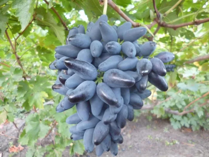 Такая нестандартная форма, наряду с очень крупным размером ягоды (15-17 грамм) и насыщенным черным цветом, делает гроздь чрезвычайно эффектной и товарной. Именно эта запоминающаяся внешность в сочетании с ранним созреванием стала основой популярности формы среди садоводов.