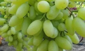 Главная отличительная черта — размер и форма ягод. Они удлиненные или удлиненно-овальные, очень крупные, массой от 10 до 14 граммов каждая. При полном созревании окраска варьируется от зеленовато-желтой до насыщенного желтоватого и белого оттенка.
