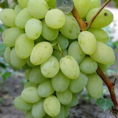 Главная отличительная черта — размер и форма ягод. Они удлиненные или удлиненно-овальные, очень крупные, массой от 10 до 14 граммов каждая. При полном созревании окраска варьируется от зеленовато-желтой до насыщенного желтоватого и белого оттенка.