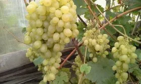 Результатом правильного ухода становятся впечатляющие грозди средней рыхлости, массой от 700 граммов до 1.2 килограмма. Ягоды крупные, овальной формы, белого цвета, каждая может достигать веса до 10 граммов. Вкус оценивается как гармоничный — сбалансированное сочетание сахара и кислоты без выраженных мускатных или травянистых тонов.