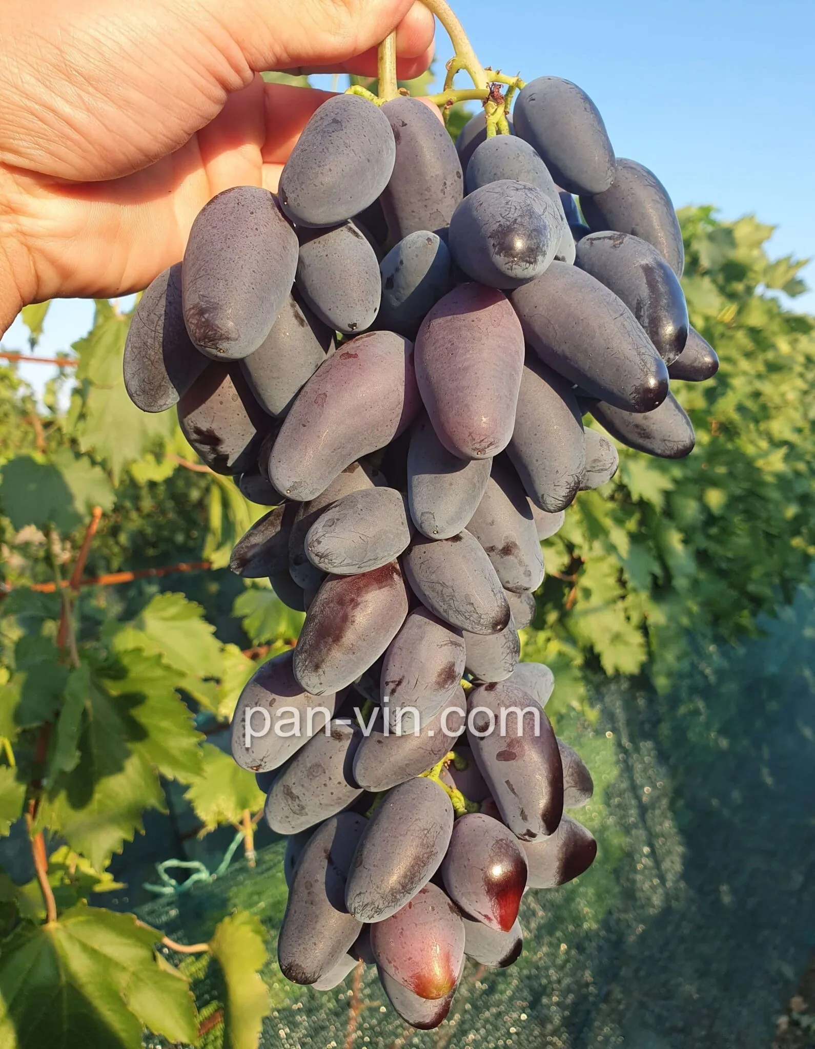 Крупный размер ягод (14-16 г) и их эффектная вытянутая форма «толстый пальчик» делают грозди этого сорта прекрасным украшением праздничного стола.