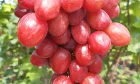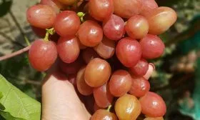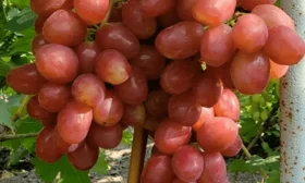 Сорт винограда «Дынька» — уникальный столовый гибрид с очень ранним сроком созревания. Его главная особенность — крупные ягоды необычной ребристой формы и яркого розово-красного цвета, напоминающие миниатюрную дыню. В статье мы подробно рассмотрим характеристики, сильные стороны и нюансы выращивания этого морозостойкого сорта с лёгким мускатным вкусом.