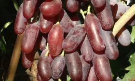Именно ягода — визитная карточка этого сорта. Их необычная сосковидная, или пальчиковая, форма — овально-вытянутая с заостренным кончиком — является сортовым признаком и сразу выделяет грозди. При полном созревании ягоды приобретают насыщенный темно-вишневый, почти фиолетовый оттенок, покрытый легким восковым налетом (пруином), который выполняет защитную функцию.