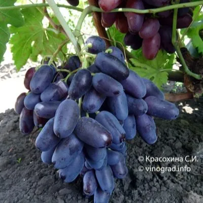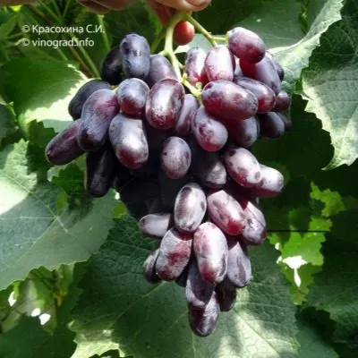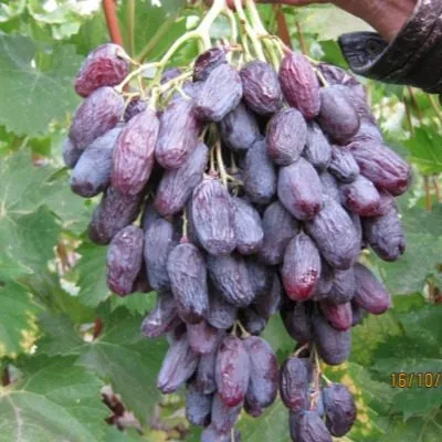 Именно ягода — визитная карточка этого сорта. Их необычная сосковидная, или пальчиковая, форма — овально-вытянутая с заостренным кончиком — является сортовым признаком и сразу выделяет грозди. При полном созревании ягоды приобретают насыщенный темно-вишневый, почти фиолетовый оттенок, покрытый легким восковым налетом (пруином), который выполняет защитную функцию.