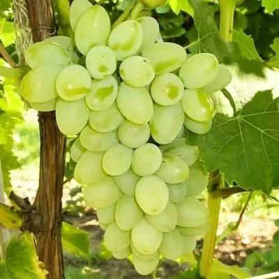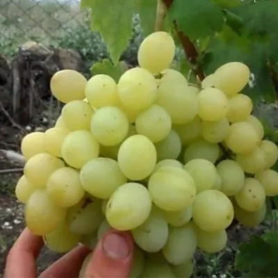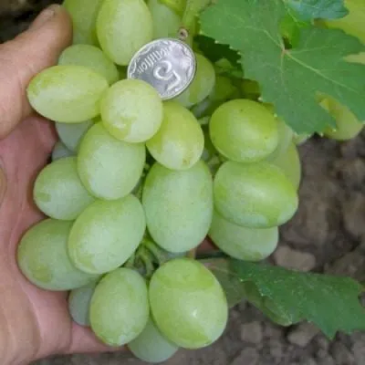 Главная гордость сорта — крупные, овальные ягоды массой 8-12 граммов каждая. Их кожица при еде практически не ощущается, что является ключевым достоинством для столового винограда. Основной окрас — чистый янтарно-желтый.