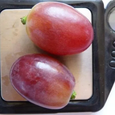 Ягоды выровненные, овальной формы, крупные, массой 15-16 граммов. Их насыщенный темно-красный цвет равномерно распределен по всей поверхности. Созревшие ягоды покрыты заметным пруиновым налетом — естественным восковым слоем, который защищает от испарения влаги и механических повреждений.