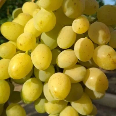 Ягоды крупные, массой 10-12 граммов, с характерной овально-яйцевидной формой. В фазе полной физиологической зрелости их окраска становится равномерной, насыщенной, янтарно-желтой без зеленых пятен у плодоножки.