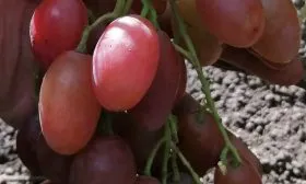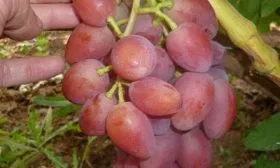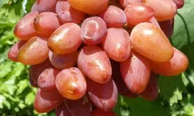 Грозди крупные, рыхлые или средней плотности, что является преимуществом, так как снижает риск поражения гнилями внутри кисти. Ягоды очень крупные, овально-яйцевидной формы, с привлекательной розовой или желто-розовой окраской.
