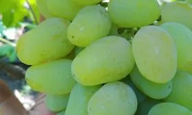 Окраска кожицы технически белая, но на солнечной стороне проявляется характерный золотистый «загар». Этот румянец не только украшает гроздь, но и служит индикатором оптимальной освещенности и зрелости.