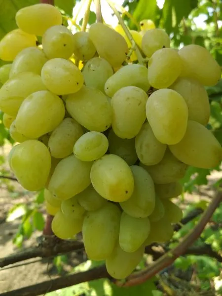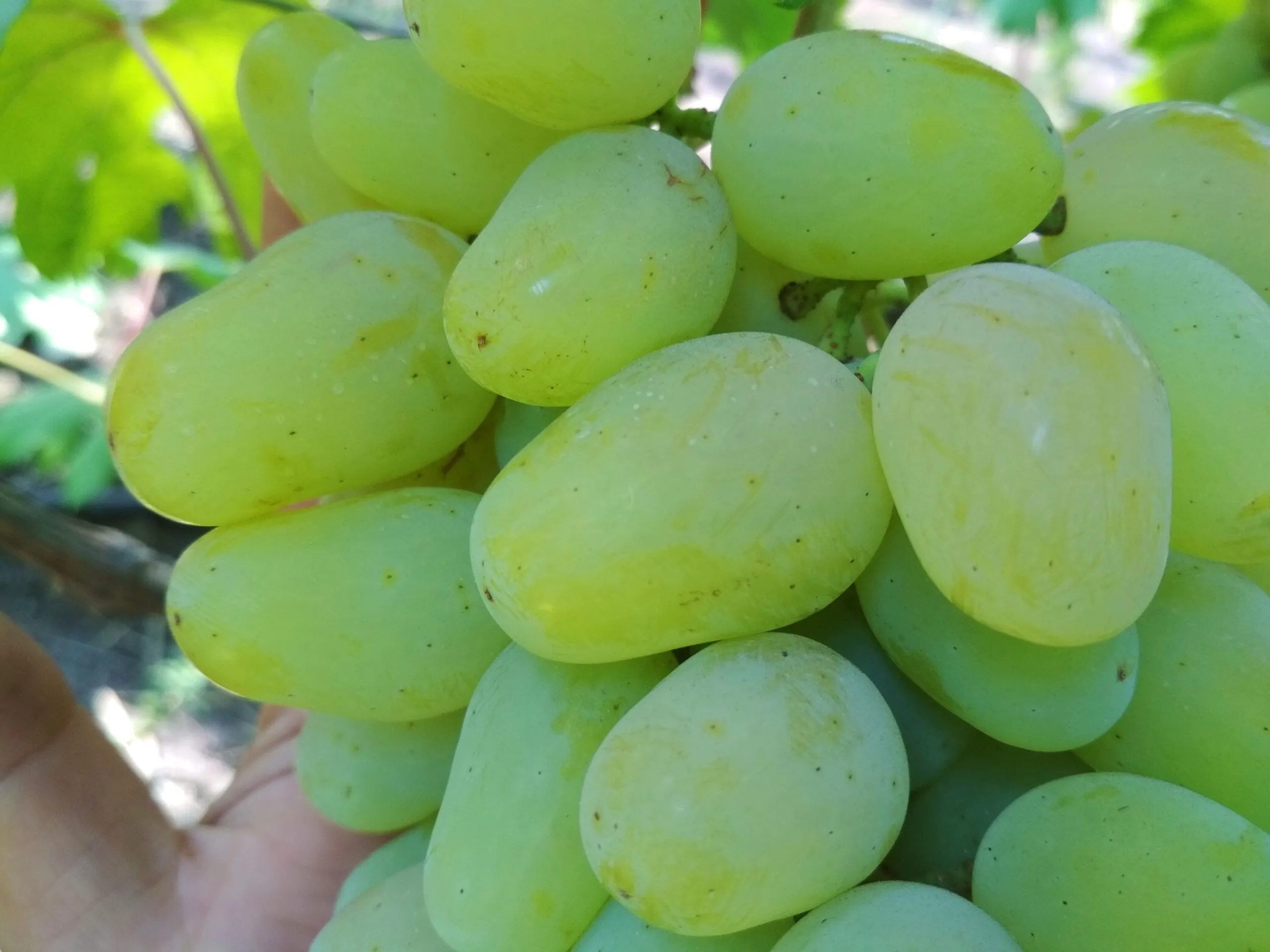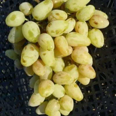 Окраска кожицы технически белая, но на солнечной стороне проявляется характерный золотистый «загар». Этот румянец не только украшает гроздь, но и служит индикатором оптимальной освещенности и зрелости.