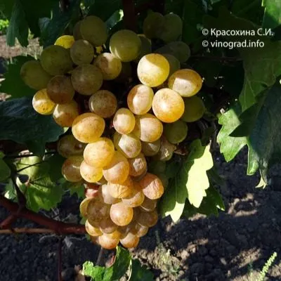 Ягоды собраны в плотные, нарядные грозди конической формы средней массой 300-400 граммов. Именно плотность грозди обеспечивает хорошую транспортабельность и товарный вид, так как ягоды меньше травмируются при перевозке.
