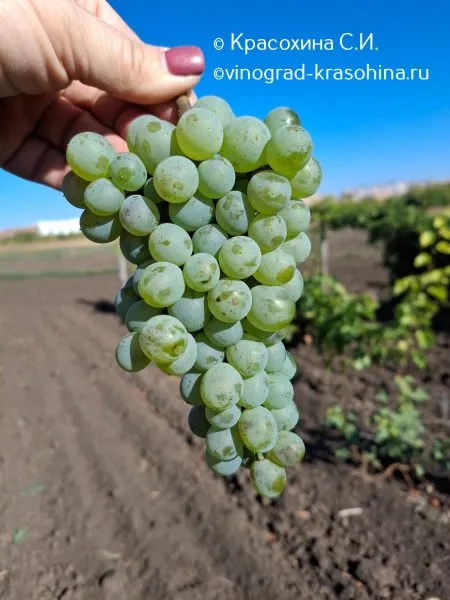 Мякоть сочная, без выраженной мясистости, что подтверждает её техническую направленность. Грозди имеют рыхлую структуру: ягоды расположены неплотно, не сдавливая друг друга. Это естественным образом улучшает проветривание внутри кисти, снижая риск развития серой гнили в сырую погоду, но придает грозди менее «товарный» вид.