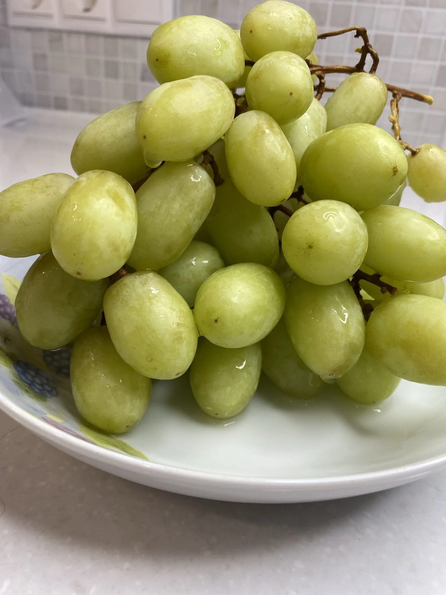 Ягоды округлой формы, крупные, с массой 6-7 граммов. Их окраска — одна из визитных карточек сорта. Основной цвет бело-зеленый, но на ягодах, обращенных к солнцу, проявляется нежный розовый «загар». Этот румянец может быть как едва заметным, так и довольно интенсивным, что делает гроздь нарядной и «живой».