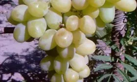 При полном созревании кожица приобретает теплый янтарный оттенок. На солнечной стороне грозди нередко проявляется нежный розоватый «загар». Кожица, согласно характеристикам, тонкая, при еде практически не ощущается, но благодаря своей эластичности хорошо защищает сочную мякоть.
