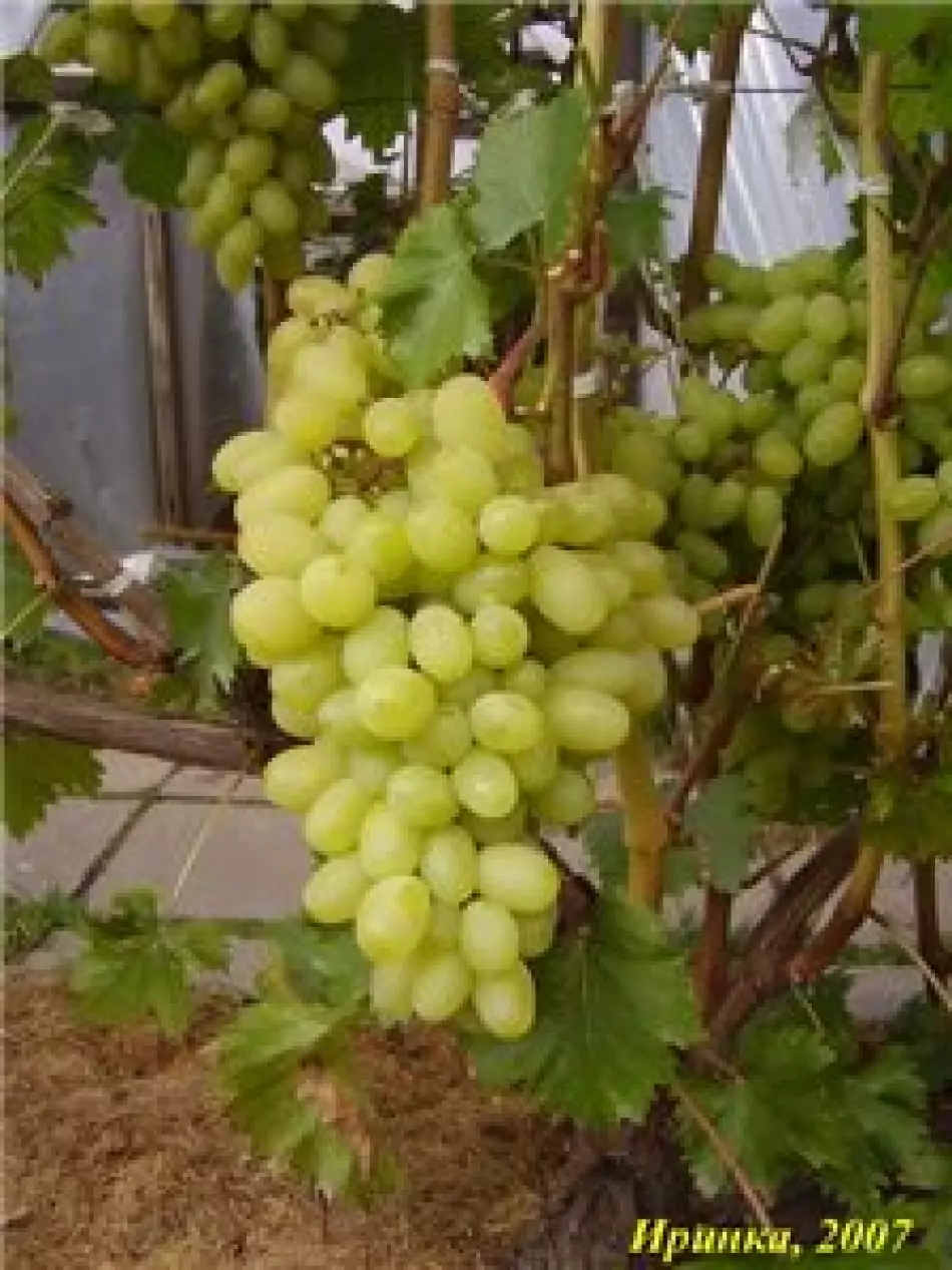 Этот многоступенчатый подход позволил объединить несколько ценных признаков: очень раннее созревание от кишмишных «предков», крупноплодность и привлекательный внешний вид от европейских родителей. Отсутствие в пыльцевой смеси сортов с грубой кожицей предопределило формирование у Иринки тонкой, легко рвущейся оболочки ягоды.
