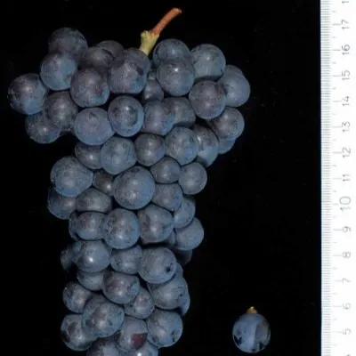 Внешний вид урожая этого сорта выдает в нем классический винный сорт, ориентированный на переработку, а не на потребление в свежем виде. Грозди имеют коническую форму и среднюю плотность, что является оптимальным для технических сортов. Такая структура обеспечивает хорошую проветриваемость, снижая риск развития гнилей в условиях влажного климата.