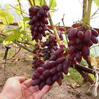 | Цвет и форма ягоды | Фиолетово-красный, удлиненно-овальная | Ягоды крупные (около 7 г), с привлекательным насыщенным окрасом, который усиливается по мере созревания. Удлиненная форма делает гроздь особенно нарядной. |