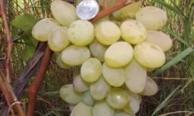 Визуальная отличительная черта — форма и масса ягоды. Плоды удлиненные, яйцевидные с характерным заостренным кончиком, их вес колеблется от 10 до 15 граммов. Такие параметры делают гроздь очень эффектной и товарной.
