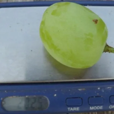 Визуальная отличительная черта — форма и масса ягоды. Плоды удлиненные, яйцевидные с характерным заостренным кончиком, их вес колеблется от 10 до 15 граммов. Такие параметры делают гроздь очень эффектной и товарной.