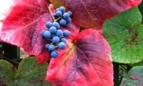 Особую ценность, помимо урожая, представляет осенняя декоративность. С наступлением прохладных ночей листва начинает окрашиваться в насыщенные багряные, винно-красные и пурпурные тона. Это превращает лозу в яркий акцент осеннего сада.