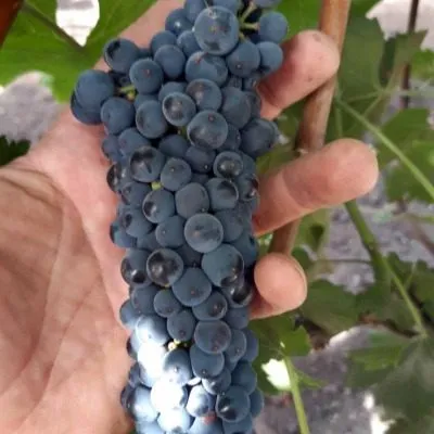 Ягоды небольшие, округлые, фиолетового цвета с интенсивным восковым налетом (пруином). Кожица у них тонкая — это идеально для виноделия, так как способствует быстрой экстракции (извлечению) красящих веществ и сока без излишней горечи. Однако эта же особенность делает урожай уязвимым для ос, птиц и механических повреждений.
