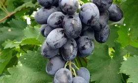 - Ришелье. От Ришелье новый сорт унаследовал интенсивную темно-синюю, почти черную окраску ягод, а также мощную силу роста кустов, что является важным агротехническим нюансом при планировании посадок и формировке.