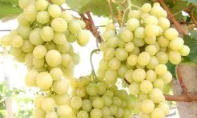 Окраска кожицы описывается как янтарно-белая. На практике это означает светлый, теплый желтоватый оттенок, который на хорошо освещенных гроздях может переходить в более насыщенный золотистый. Этот эффект часто называют «загаром».