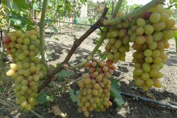 Агротехника этого сильнорослого столового сорта строится вокруг управления его энергией роста и обеспечения стабильных условий для формирования очень крупных ягод. Ключевые моменты — просторная посадка, грамотная формировка и строгое нормирование урожая.
