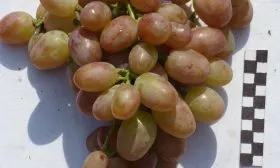 От «отца» Маркиза унаследовала такие важные признаки, как крупный размер ягоды и грозди, а также повышенную устойчивость к грибковым заболеваниям. При этом гибридная форма заметно улучшила сроки созревания, сместив их в более раннюю категорию, и приобрела собственный, узнаваемый янтарно-розовый окрас ягод.