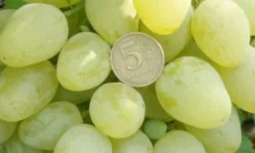 Главная отличительная черта сорта — крупные, выравненные ягоды. Их средняя масса достигает 20 граммов, что является выдающимся показателем для белого винограда. Форма плодов правильная, овальная, иногда слегка яйцевидная.