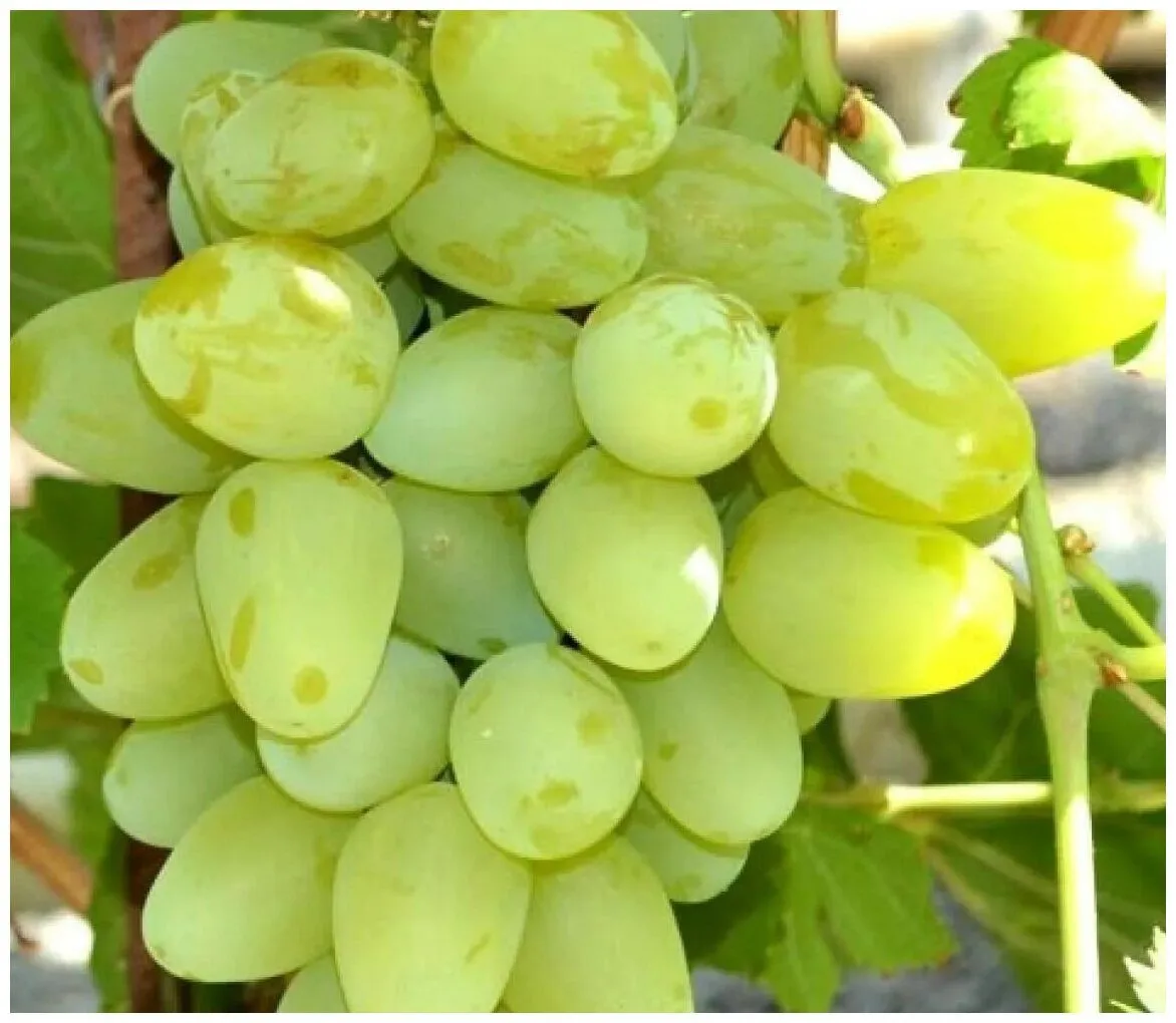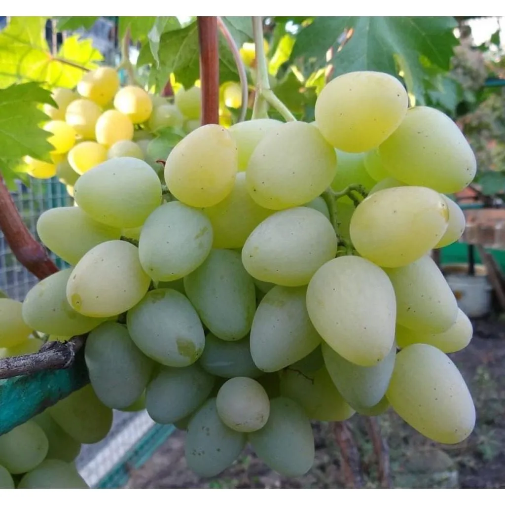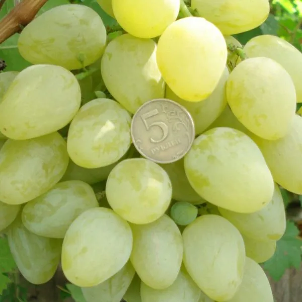 Главная отличительная черта сорта — крупные, выравненные ягоды. Их средняя масса достигает 20 граммов, что является выдающимся показателем для белого винограда. Форма плодов правильная, овальная, иногда слегка яйцевидная.